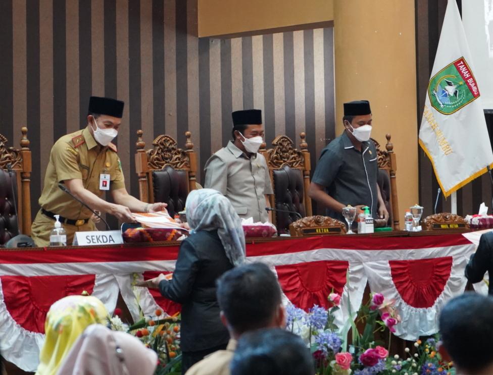 Sekda Tanbu Dengarkan Pemandangan Umum Fraksi DPRD Terhadap Raperda RPJMD