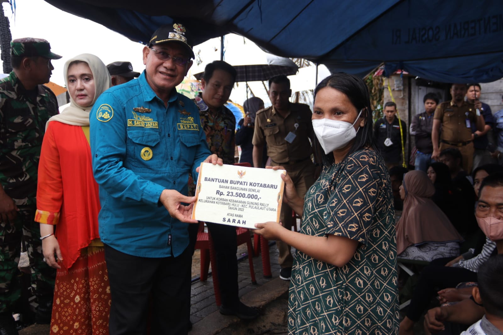Bupati Kotabaru Kunjungi dan Berikan Bantuan ke Korban Kebakaran Gunung Rely