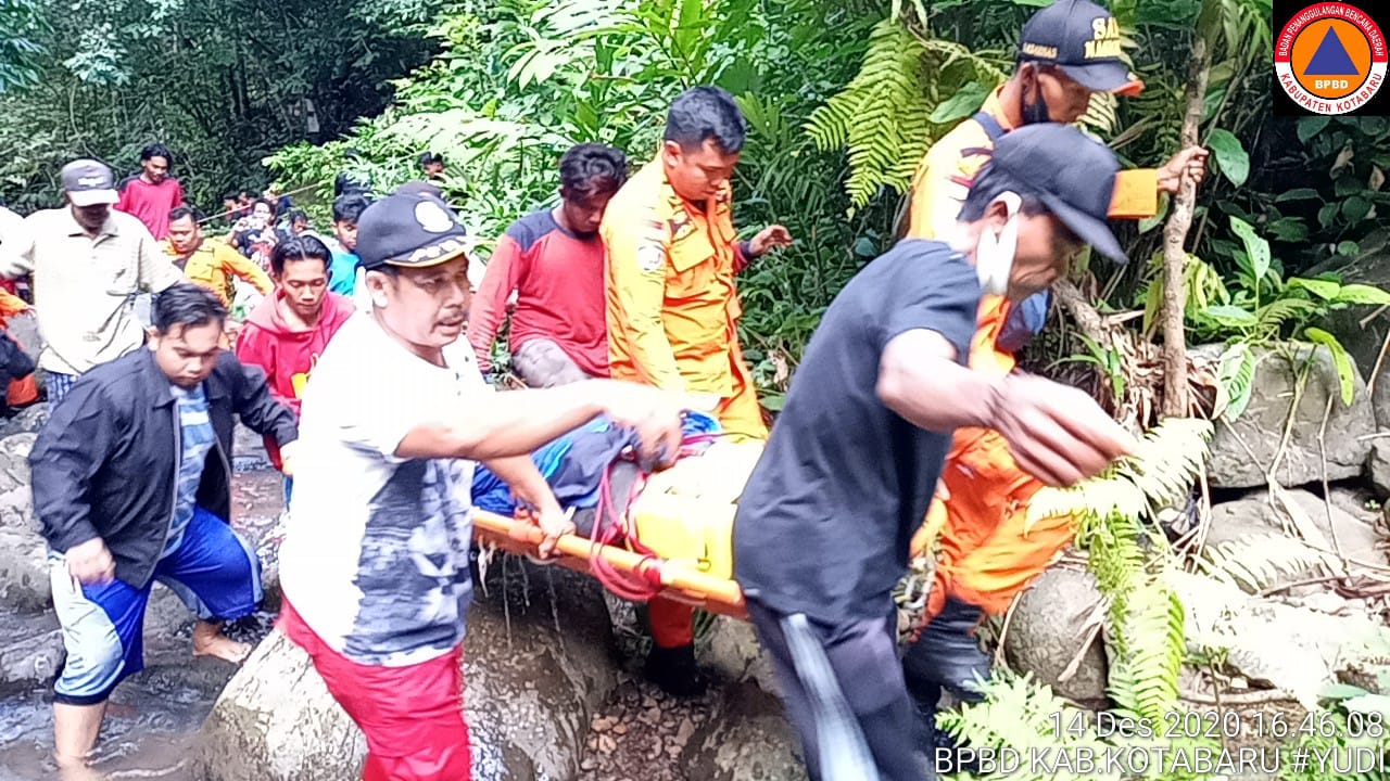 BPBD Kotabaru, Evakuasi Warga Yang Tergelincir ke Sungai