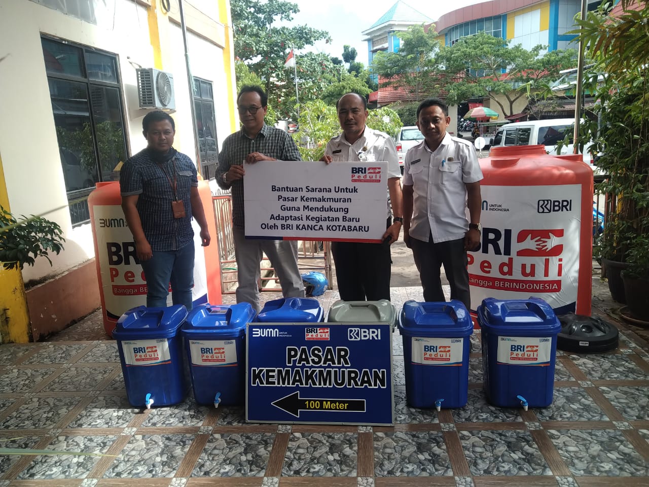 BRI Kotabaru Berikan Bantuan Tong Air Dan Marka Untuk Pasar Kemakmuran