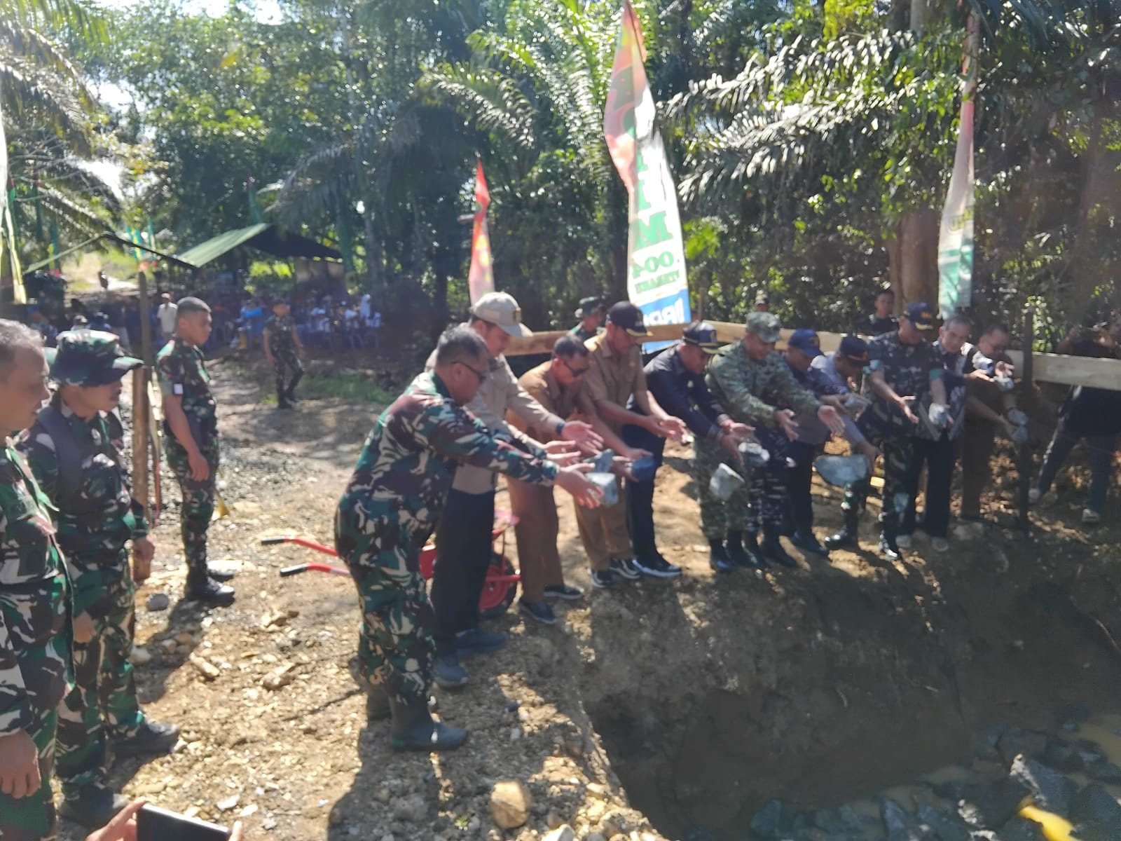 Turut hadir Dandim 1004/Kotabaru Letkol Inf Cecep Cahyadi, Danyon TP 884/Saijaan Letkol Inf Priya Firmansyah, Anggota DPD Kotabaru Agus Subejo, Kapolsek Hampang Iptu Cuncun Subartono, serta sejumlah pejabat lainnya.