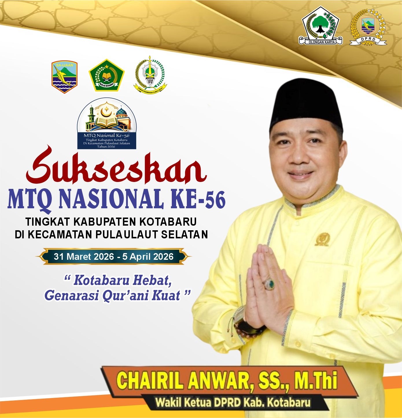Wakil Ketua DPRD Kotabaru, Chairil Anwar, menyampaikan bahwa MTQ bukan sekadar ajang perlombaan, tetapi memiliki makna yang lebih luas dalam kehidupan bermasyarakat.
