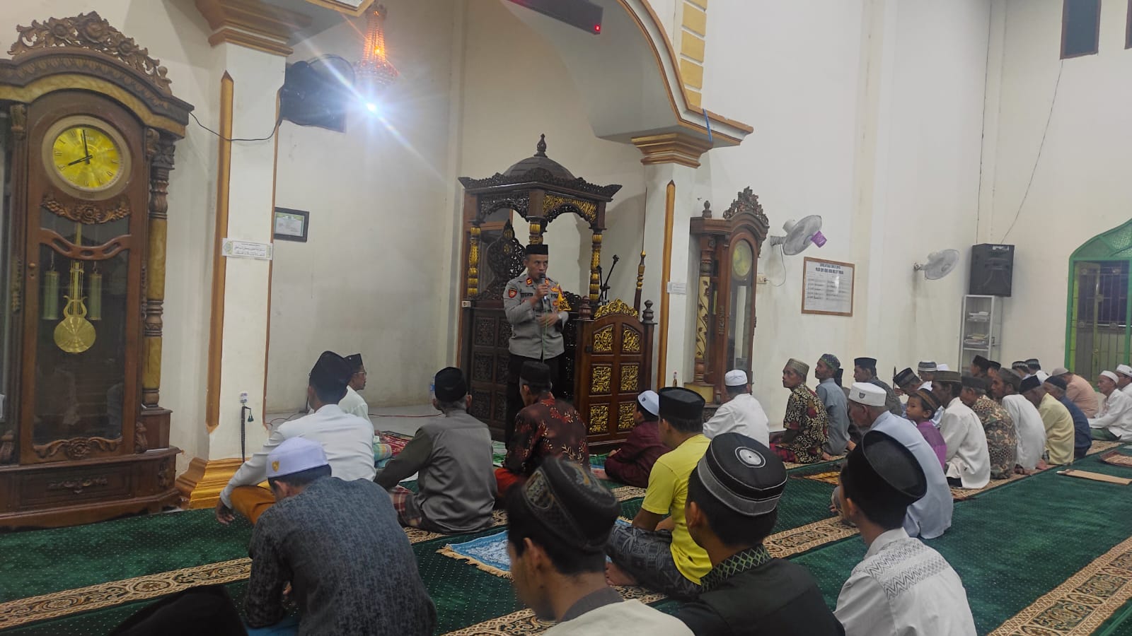 Metrokalsel.co.id, BATULICIN – Kapolsek Batulucin, Iptu Kusnin, SAP kembali menyampaikan pesan-pesam Kamtibmas saat melaksanakan giat salah tarawih keliling di Masjid Jami Nurul Huda, Desa Segumbang, Kecamatan Batulicin, Tanah Bunbu, Senin (25/3/2024) malam.