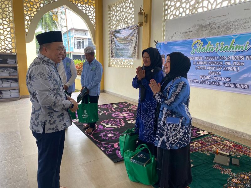 Metrokalsel.co.id,BATULICIN – Anggota DPR RI Komisi VII, H. Sudian Noor, bersama Ketua Umum DPP Badan Komunikasi Pemuda Remaja Masjid Indonesia (BKPMRI), H Nanang Mubarok, menggelar silaturahmi dengan puluhan ustadz dan ustadzah dari Lembaga Pendidikan Tilawatil Quran (TKA-TPA) LPPTKA BKPMRI se-Kabupaten Tanah Bumbu.