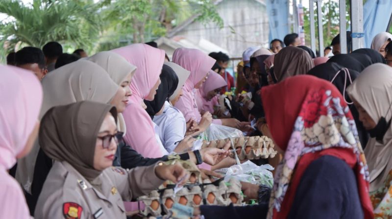 Adapun sejumlah bahan pangan yang dijual dalam kegiatan tersebut antara lain minyak goreng seharga Rp15.000, gula Rp15.000, beras Rp50.000, telur setengah rak Rp25.000, mie instan isi 10 bungkus Rp20.000, daging sapi Rp150.000 per kilogram, serta ayam potong Rp35.000 per ekor.